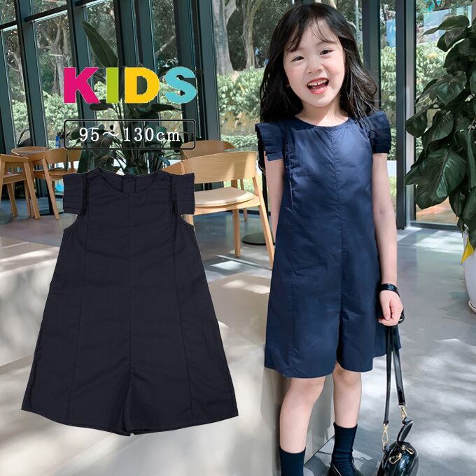 子供服 オールインワン 女の子 キッズ 半袖 フリル袖 クルーネック ファスナー付き 丸首 ギフト カジュアル ショート丈 着痩せ 夏 かわいい おしゃれ 新作 送料無料