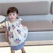 子供服 ワンピース 女の子 キッズ 子供ドレス 胸切替 ミニワンピース ノースリーブ バックリボン 花 プリント ボーダー カジュアル 夏 かわいい おしゃれ 新作 送料無料