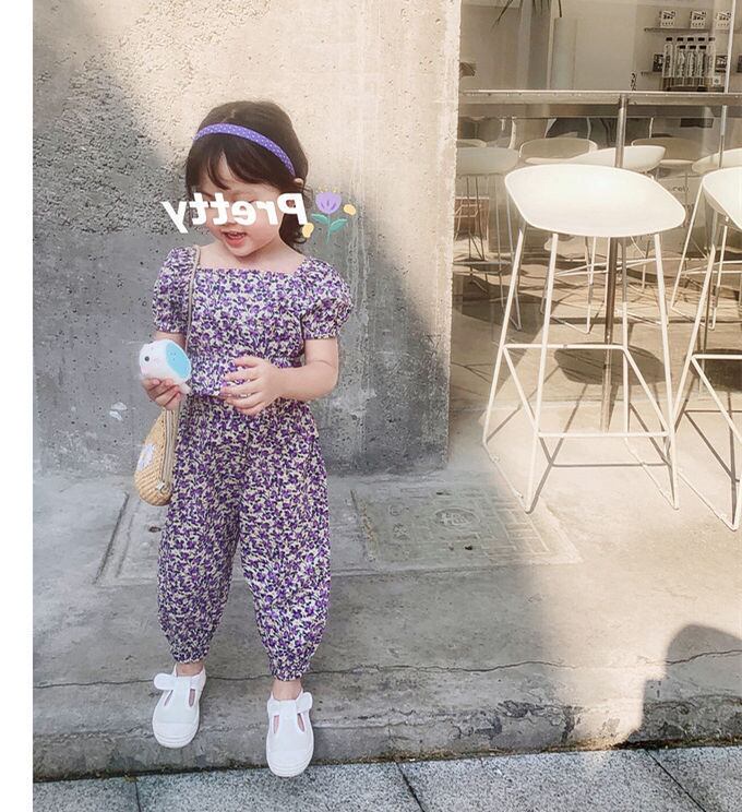 上下セットアップ 子供服 キッズ 女の子 セットアップ 2点セット 小花柄 チェック柄 ボリューム袖 Tシャツ スカラップ パンツロング かわいい コットン 夏 新作 送料無料