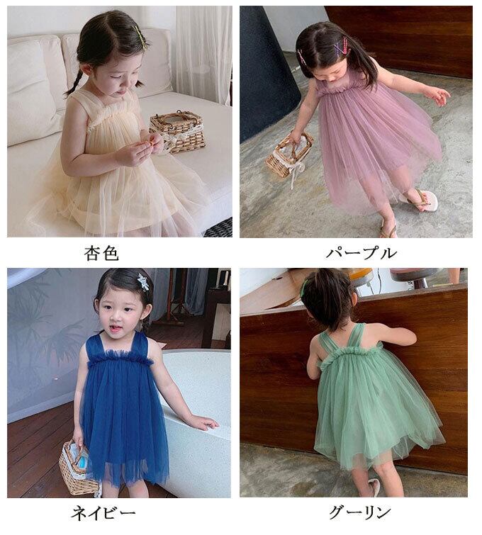 子供ワンピース キャミワンピース ノースリーブ 膝丈ワンピース 子供服 ワンピース 子供ドレス dress キッズ 女の子 チュール 夏 無地 おしゃれ 可愛い