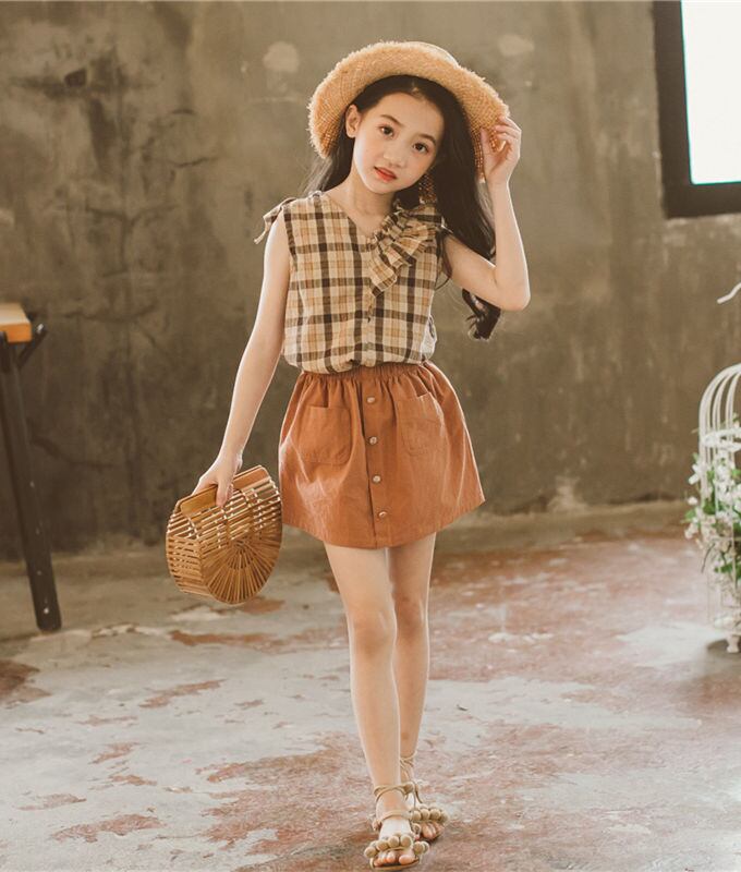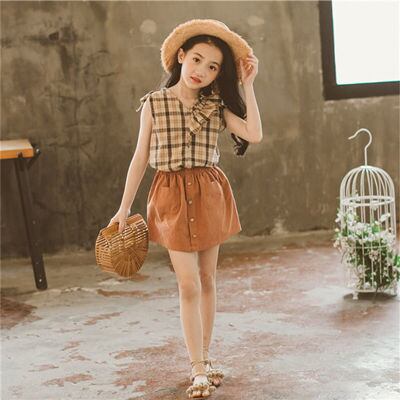 子供服 セットアップ 女の子 ノースリーブ 夏 上下セット 韓国子供服 キッズ ジュニア ノースリーブTシャツ スカート ミニスカート 可愛い おしゃれ 通学着 新品 送料無料