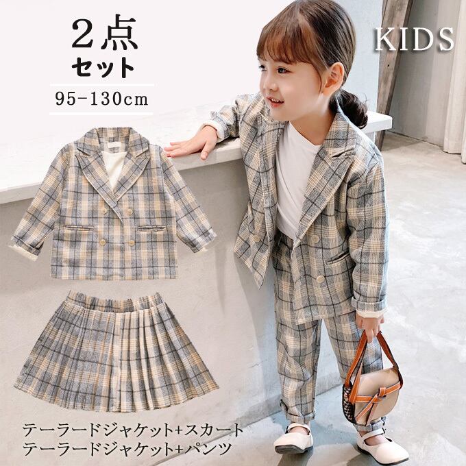 子供服 セットアップ 女の子 長袖 春夏 上下セット テーラードジャケット スカート パンツ チェック柄 韓国子供服 キッズ ジュニア 可愛い おしゃれ 通学着 新品 送料無料