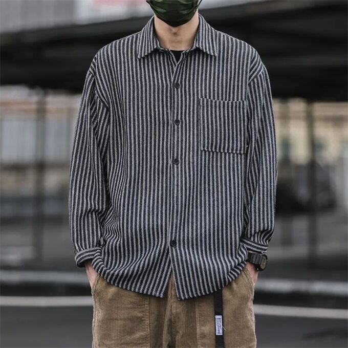 長袖シャツ メンズ トップス 綿麻 ストライプ シングル 大きいサイズ ゆったり 着痩せ カジュアル 通勤 通学 かっこいい お洒落 紳士 春秋 韓国ファッション 送料無料