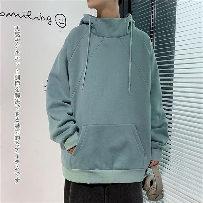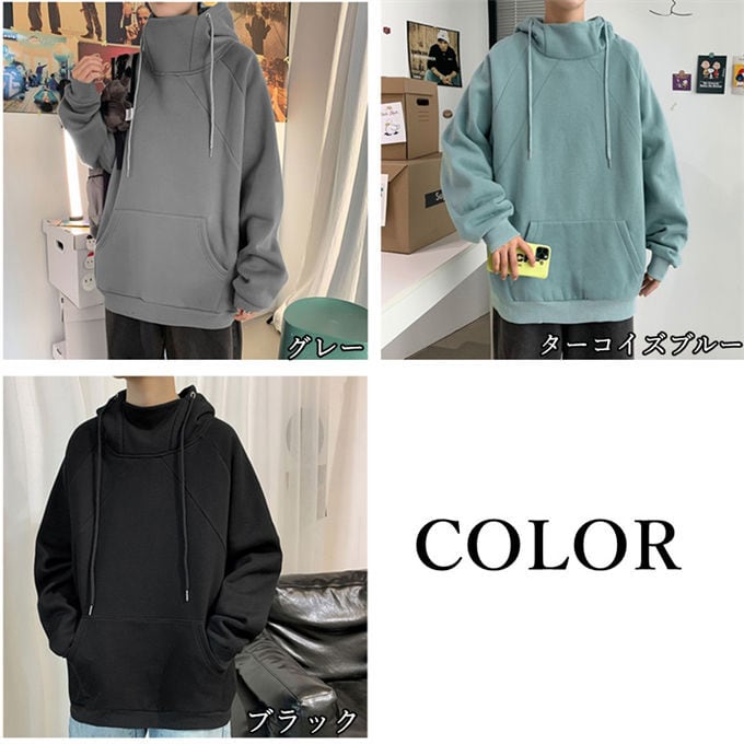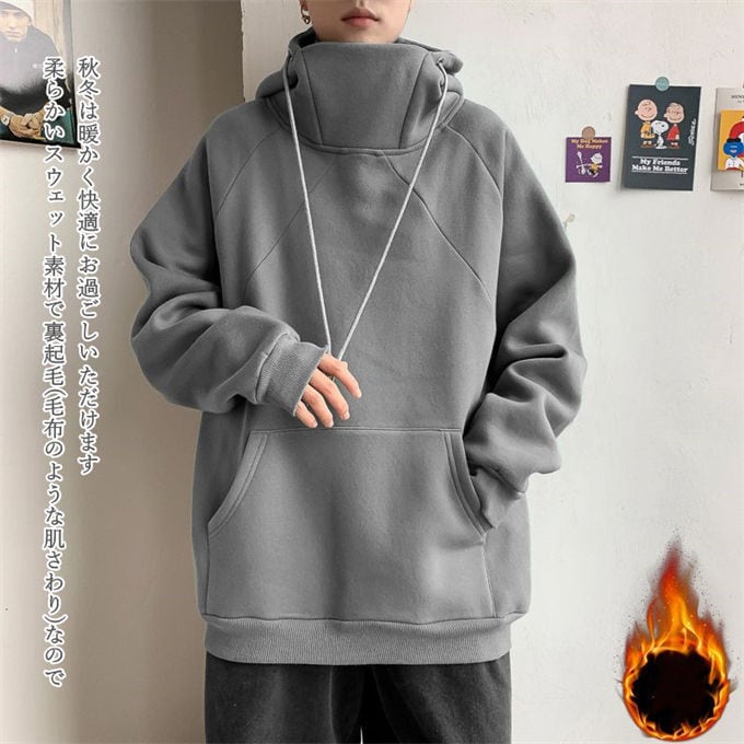 パーカー メンズ 長袖パーカー プルオーバー 無地 ハイネック トップス フード付き 厚手 裹起毛 カジュアル 大きいサイズ ゆったり 着痩せ 通勤 通学 かっこいい お洒落 ファッション 春秋 送料無料