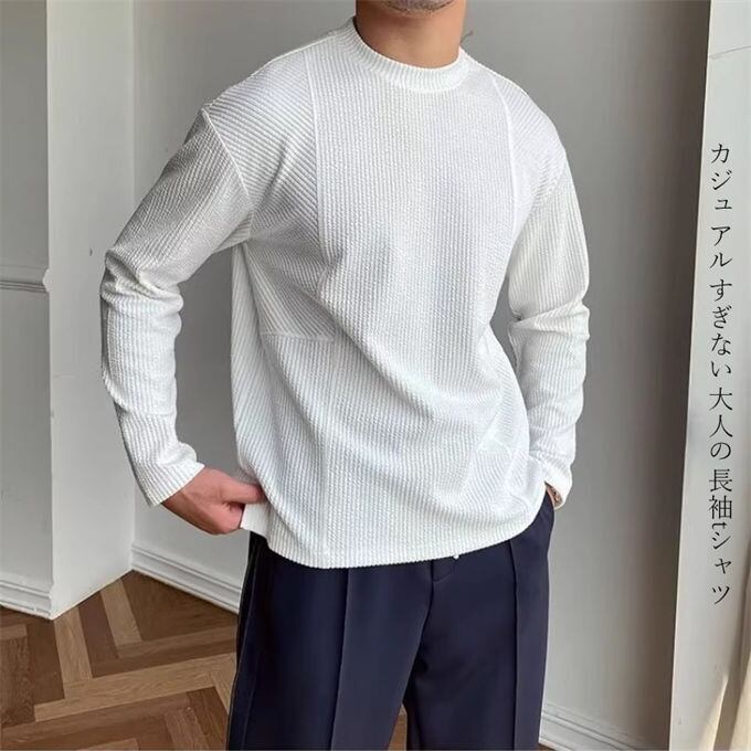 Tシャツ メンズ 長袖tシャツ オーバーサイズ ニット カットソー 無地 トップス プルオーバー インナー ゆったり 着痩せ 通勤 通学 おしゃれ ファッション 春服 秋服 送料無料