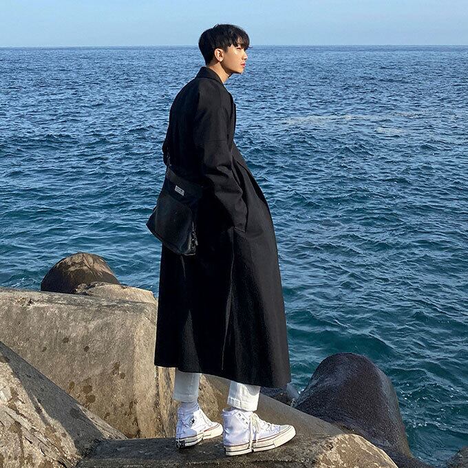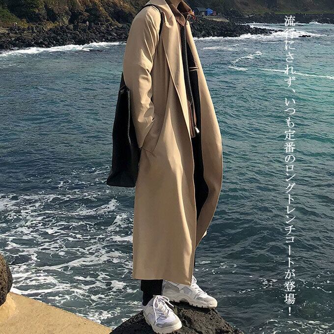トレンチコート メンズ コート ロング スプリングコート ロング丈 秋 コート 韓国 ファッション 体型カバー ゆったり カジュアル 長袖 アウター 無地 メンズファッション 通学 通勤 秋新作 送料無料