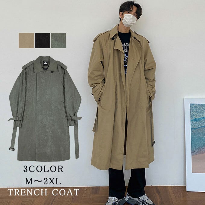 トレンチコート メンズ 長袖 コート ロング スプリングコート シンプル ロング丈 秋 コート 韓国 ファッション ゆったり カジュアル 体型カバー アウター 無地 メンズファッション 通学 通勤 秋新作 送料無料