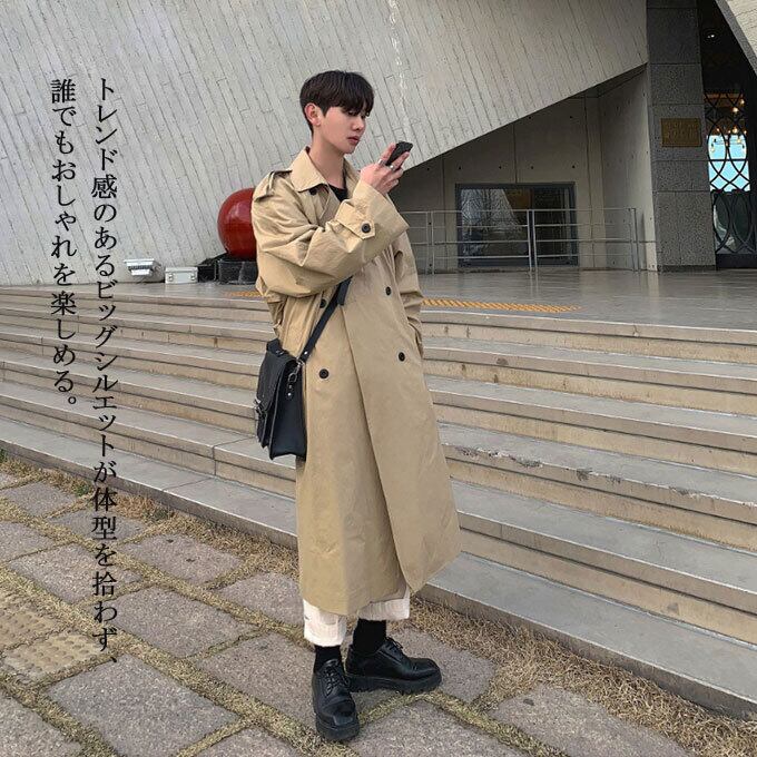 トレンチコート メンズ 長袖 コート スシンプル プリングコート ダブルボタン ロングコート 韓国 ファッション ゆったり 体型カバー カジュアル アウター メンズファッション 通学 通勤 秋新作 送料無料