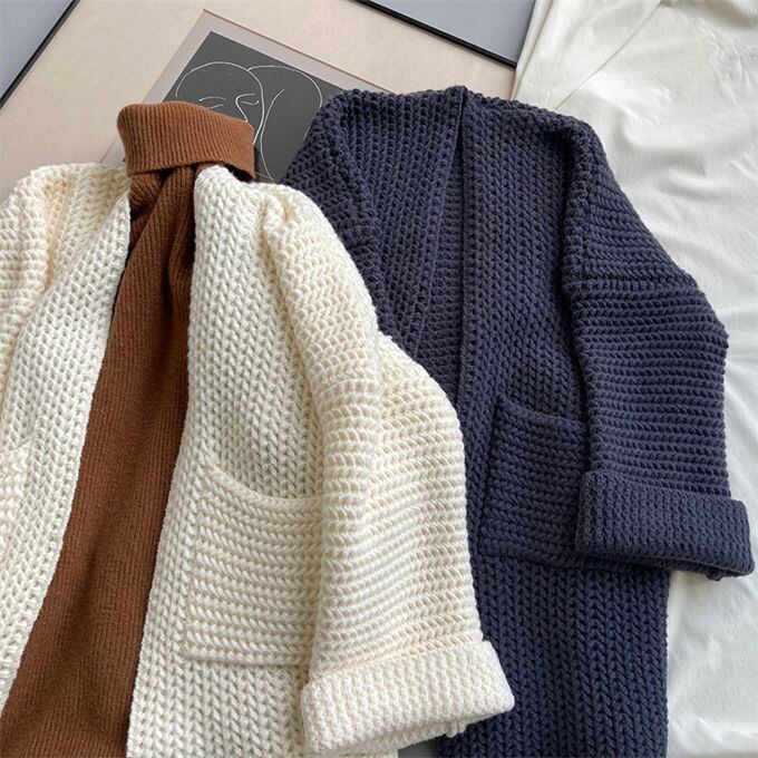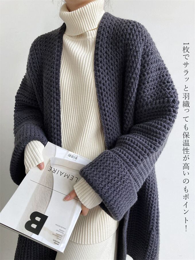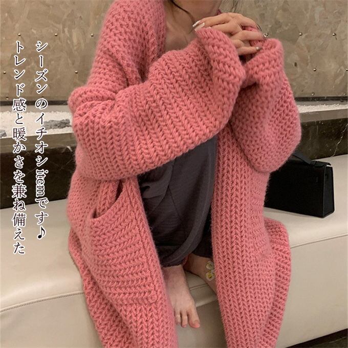 ニットカーディガン カーディガン ニット 羽織 ロングニット ロングカーディガン レディース トップス ゲーブル編み セーター 前開き ロングアウター シンプル コート カジュアル 体型カバー 可愛い 秋冬 お洒落 送料無料