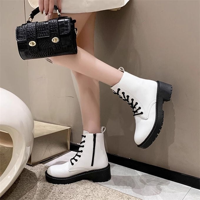 ショート ブーツ レディース 春秋ブーツ シューズ 黒 ショート レースアップ 編み上げブーツ ワークブーツ サイドファスナー 女性用 通勤 通学 美脚 春 秋 送料無料