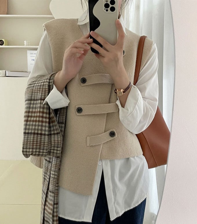 ニットベスト レディース 前開き ショート丈 トップス ノースリーブ カーディガン カジュアル ゆったり シンプル レイヤード 重ね着 きれいめ 通学 通勤 秋新作 送料無料