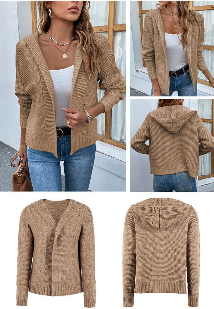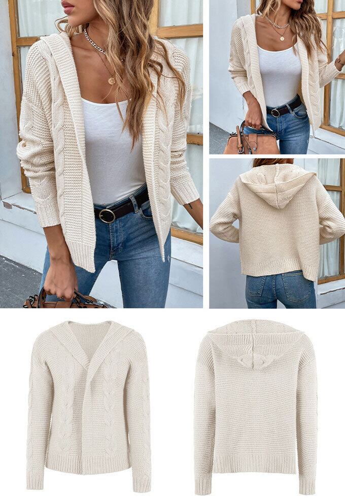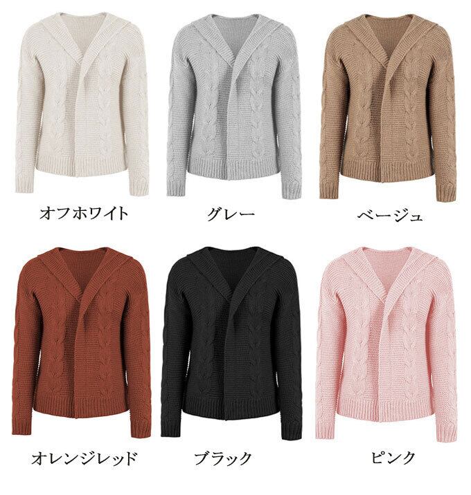ニット カーディガン レディース 長袖 フード付き トップス ショート丈 ケーブルニット 前開き アウター 羽織 コート キレイめ カジュアル シンプル 通学 通勤 秋 冬 新作 送料無料