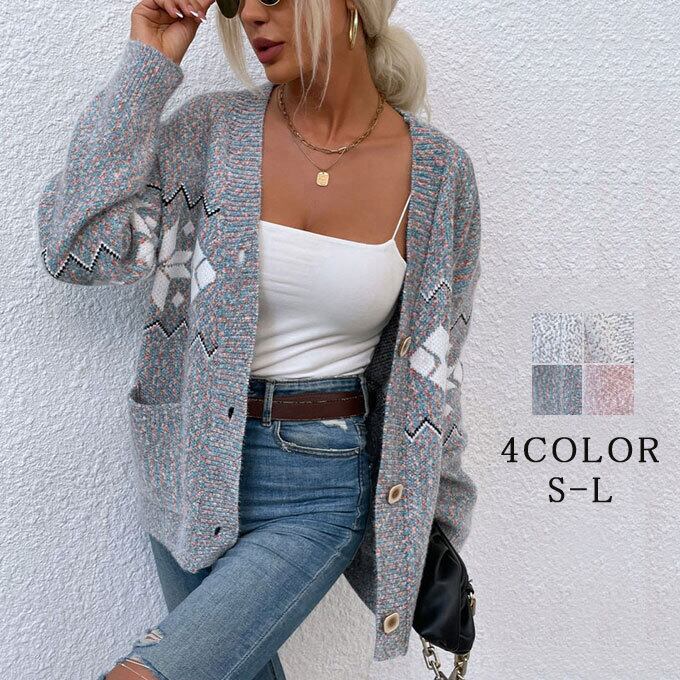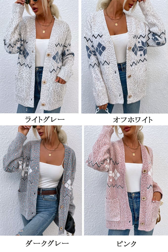 カーディガン ノルディック レディース 秋冬 ニット トップス ゆったり おしゃれ ニットカーデ カジュアル ナチュラル レトロ Vネック 前開き アウター 秋新作 送料無料