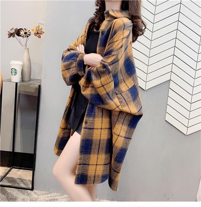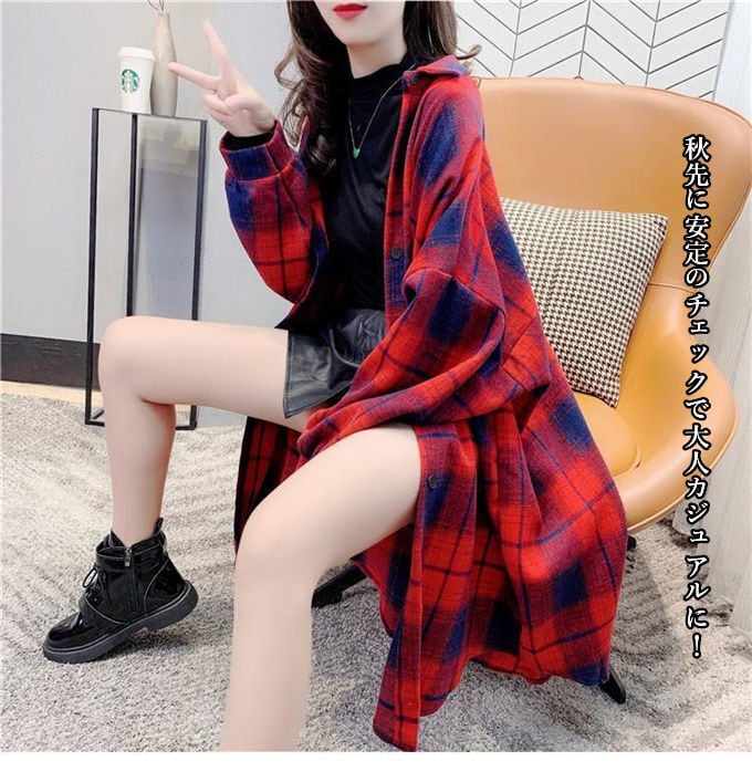 シャツブラウス レディース チェックロングシャツ チェックシャツワンピース ロングカーディガン ガウンシャツ アウター 羽織 長袖 レトロ レイヤード ゆったり 韓国風 春秋 送料無料