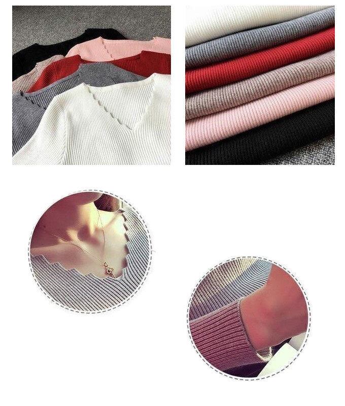 ニットセーター レディース 長袖セーター リブ編みニット Vネックニット 無地ニット 伸縮性 タイトニット シンプルニット ベーシック トップス 秋物 秋冬新作