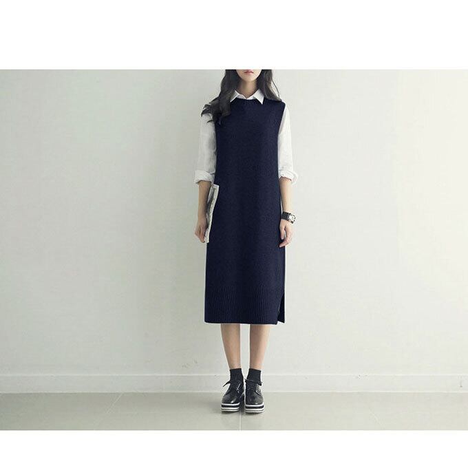 ワンピース ニットワンピース レディース ニットベスト ノースリーブ ロング 膝下 ラウンドネック ニットワンピ 無地 スリット 秋冬 おしゃれ 送料無料