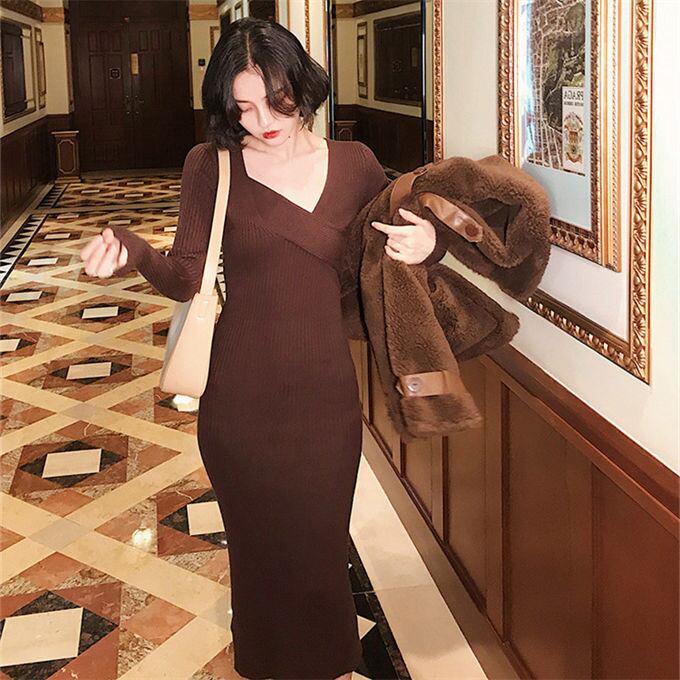 ニットワンピース タイトワンピース レディース 長袖 リブ編み ロング丈 無地 インナー 大きいサイズ 着痩せ 上品 大人 カジュアル きれいめ セクシー エレガント 秋冬 送料無料