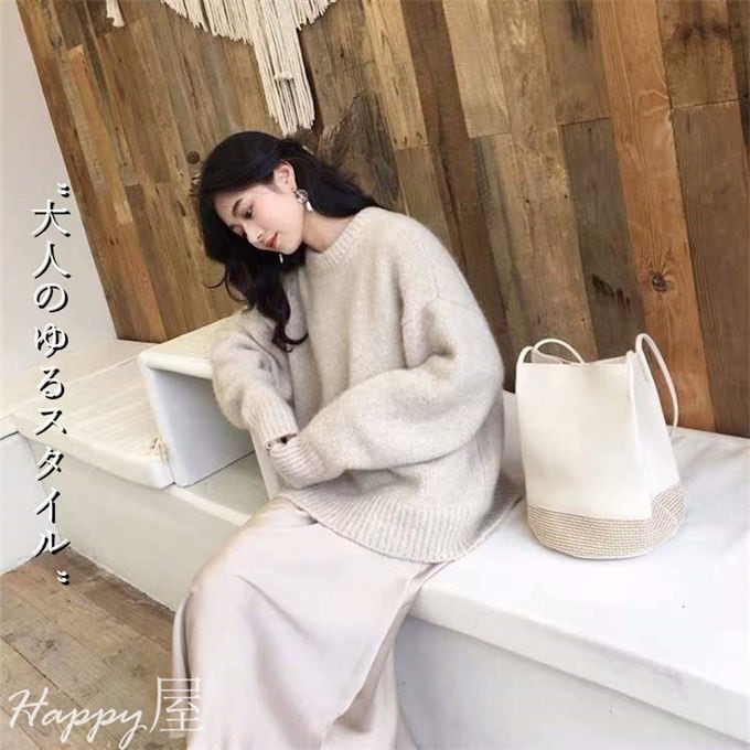 ニットセーター 冬 レディース 長袖 クルーネック トップス 体型カバー カジュアル 大人 ゆるニット プルオーバー 無地 厚手 通勤 かわいい 秋冬 送料無料