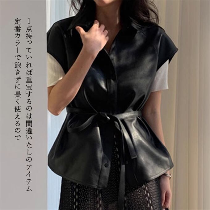 PUフェイクレザー ベスト レディース ノースリーブ スーツベスト 袖なし ビジネス トップス 羽織 シングル アウター レイヤード 無地 体型カバー 着痩せ ベルト付き きれいめ 通勤 通学 韓国ファッション シーズン 秋 冬 送料無料