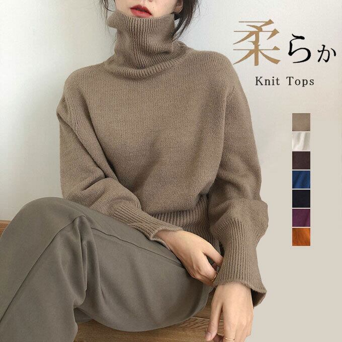ニット セーター レディース ハイネック 長袖 ショート丈 タートルネックニット 柔らかい 体型オーバー あったか シンプル 無地 プルオーバー 大きサイズ トップス キレイめ お洒落 秋 冬 新作 送料無料