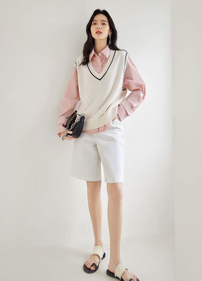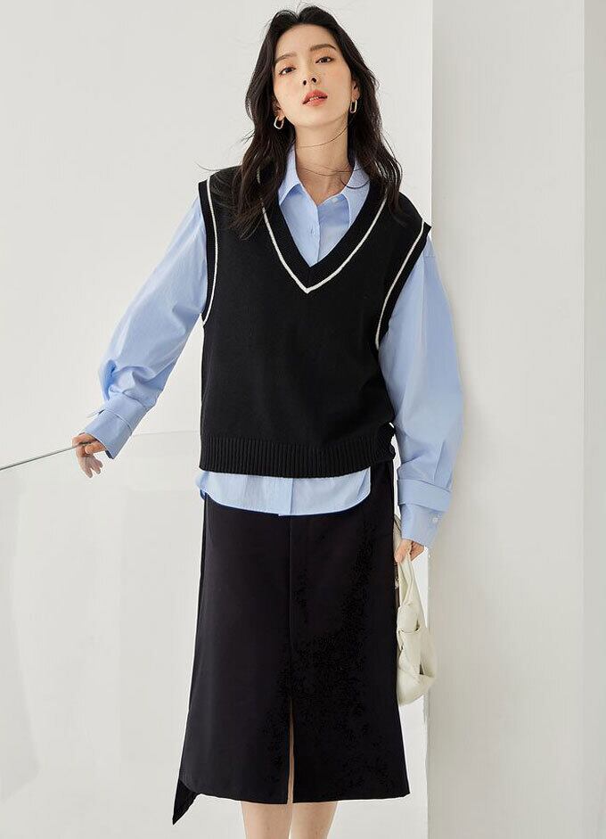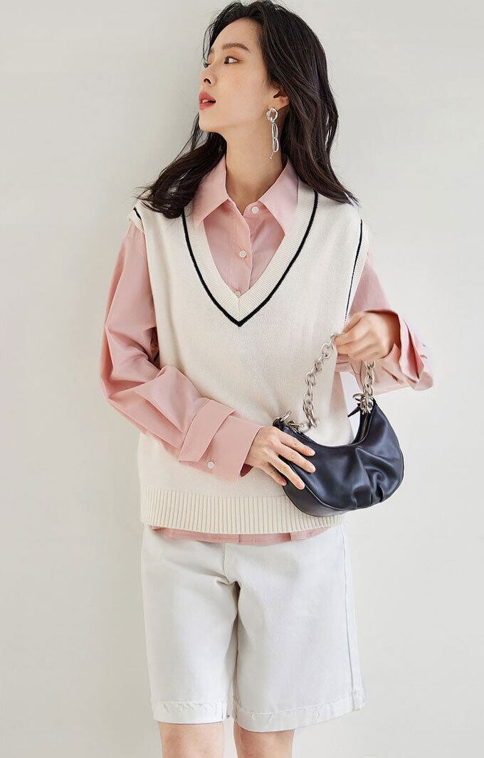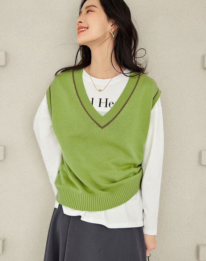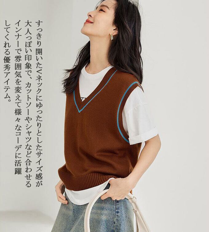 ニット ベスト レディース プルオーバー Vネック ベスト ノースリーブ ショート丈 シンプル 無地 トップス 重ね着 レイヤード ゆったり 体型カバー 大人 キレイめ カジュアル 秋 冬 新作 送料無料