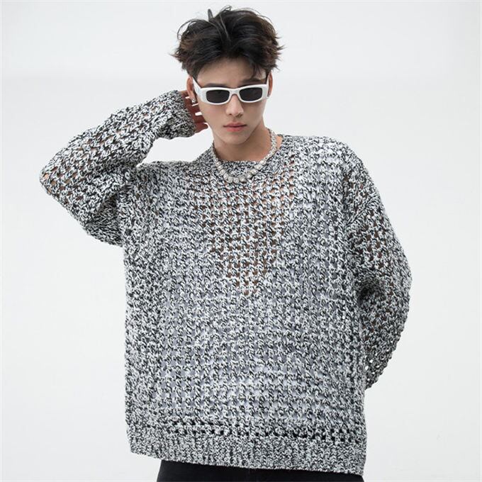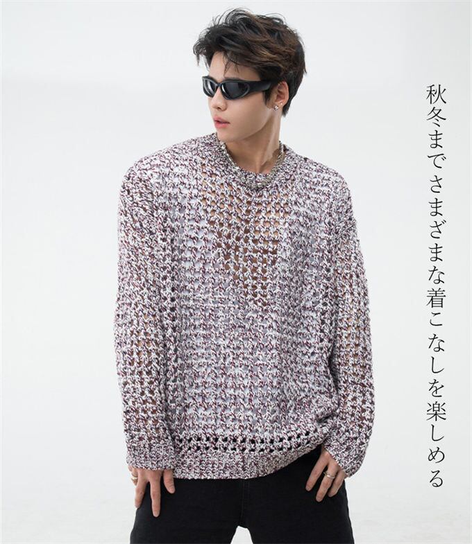 クルーネックニット メンズ レディース 透かし編み レース編み メッシュ ニット ビッグサイズ オーバーサイズ きれいめ カジュアル シンプル ナチュラル モード 韓国ファッション ストリート 送料無料