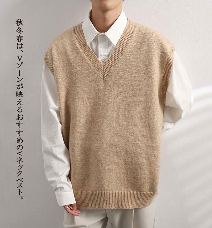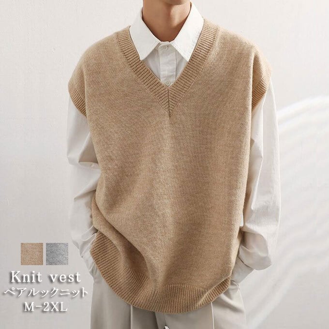 ニットベスト メンズ レディース カジュアル 重ね着 ニット トップス 秋用 無地ベスト Vネック ペアルック ニットセーター ゆったり ビッグシルエット 大人気 通学 おしゃれ 秋新作 送料無料