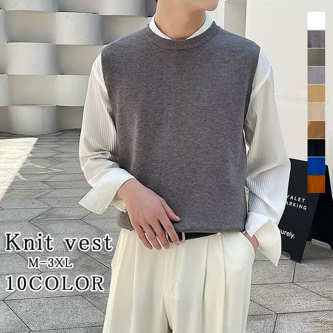 ニット ベスト メンズ 秋冬 クルーネック 無地 ニットベスト 丸首 ニット トップス 春秋冬 重ね着 セーター シンプル オシャレ カジュアル 通学 通勤 秋新作 送料無料