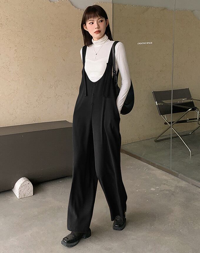 サロペット 着痩せ パンツ レディース シンプル オールインワン きれいめ 人気 大人 ロング丈 パンツ カジュアル 韓国風 かわいい おしゃれ 秋 新作 送料無料