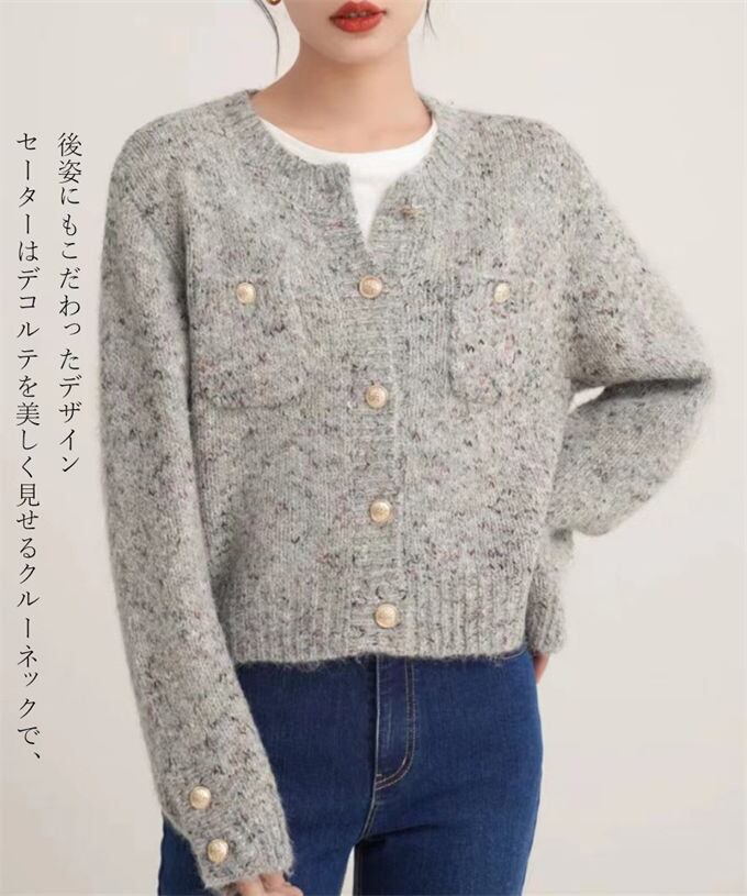 ニットカーディガン レディース ニットショート丈 クルーネック 無地 シングル トップス アウター 体形カバー ゆったり カジュアル 大人可愛い きれいめ シンプル おしゃれ 韓国 ファッション 秋冬 送料無料