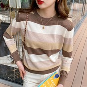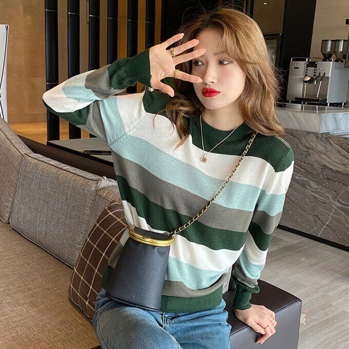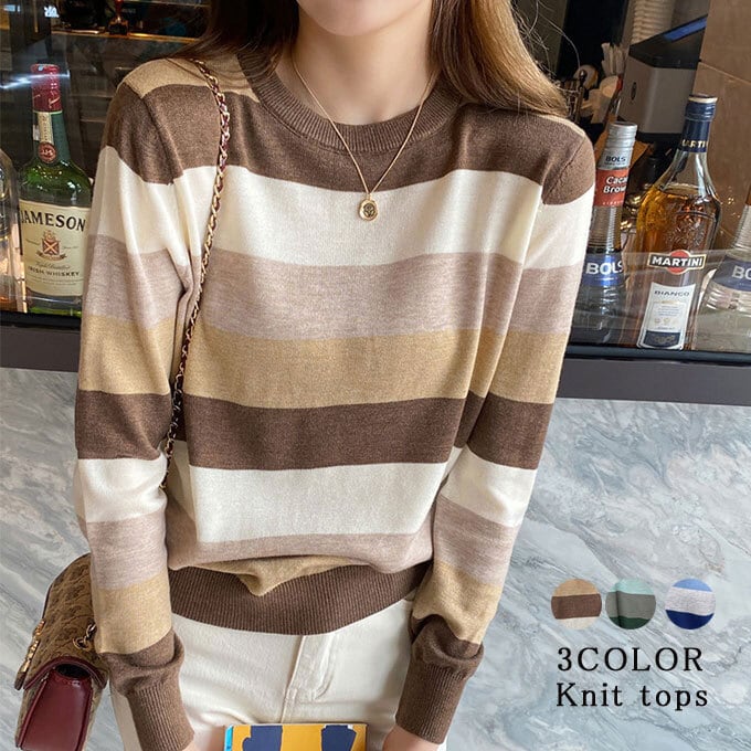 ニット セーター レディース グルーネック ボーダー ニット トップス ゆったり 体型カバー オシャレ オーバーサイズ インナー ニット おしゃれ 秋冬 新作 送料無料