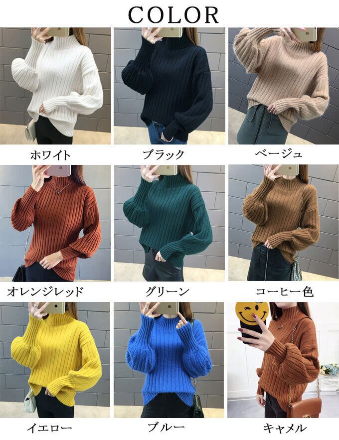 ニット レディース バルーンスリーブ ドルマン ニットトップス ボトルネック リブ編み ぽわん袖 長袖 無地 ゆったり カジュアル セーター 秋冬 新作 送料無料