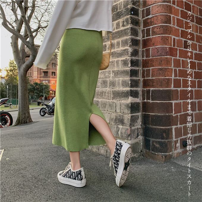 タイトスカート レディース ニット ロングスカート 裾スリット 秋 冬 オフィス 仕事 ストレッチ ロング サイドスリット 韓国ファッション オシャレ 高級感 キレイめ 通勤 送料無料