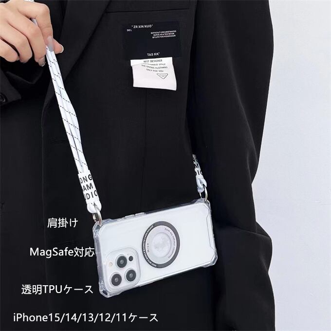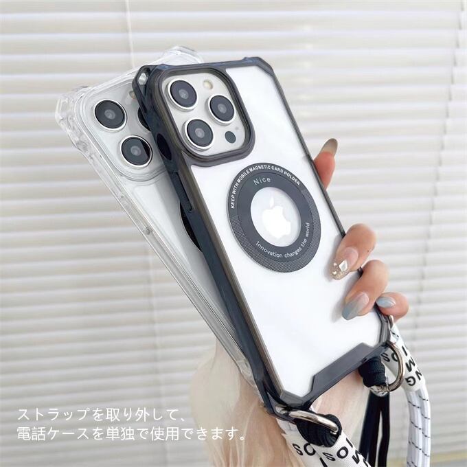 iPhone15ケース iPhone15Plusケース iPhone15Proケース iPhone15ProMaxケース iPhone14ケース iPhone14 Proケース iPhone13ProMax iPhone12ケース 耐衝撃 傷防止 携帯カバー 全面保護 iPhone全機種対応 透明TPUケース 薄型 MagSafe対応 肩掛け 縄掛けケース ストラップ