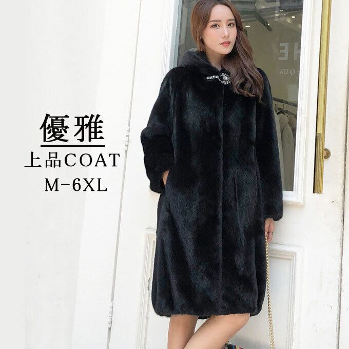 ファーコート レディース 毛皮コート ミンク レディースファー フェイクファー ロッグコート 大きいサイズ きれいめ フード付き アウター 優雅 上品アウター おしゃれ 暖かい 防寒 冬服 秋服 新作 送料無料