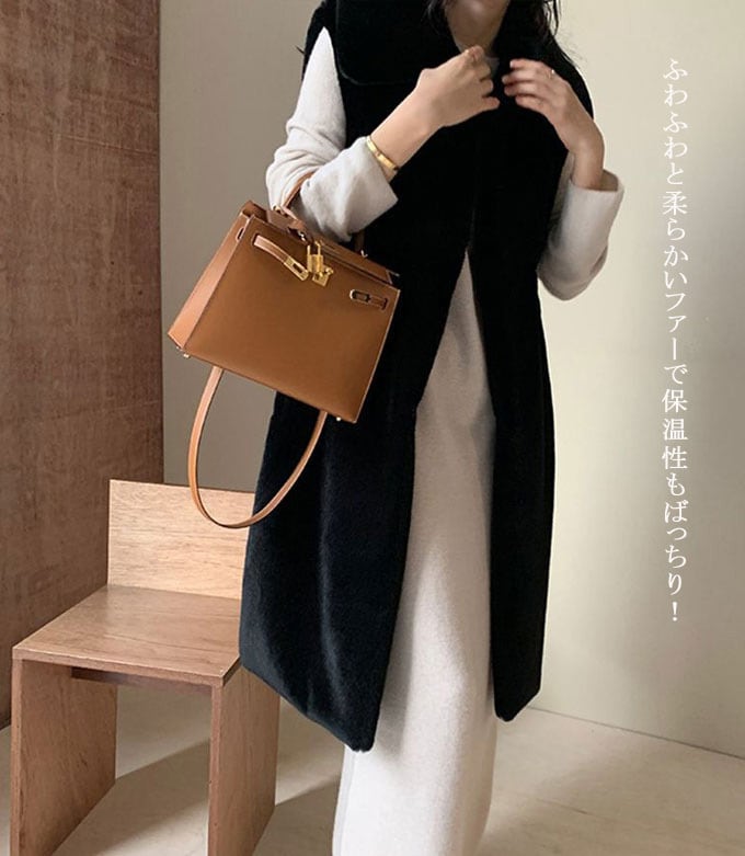 ファーベスト レディース フェイクファー ベスト ロング 秋/冬 ファーコート ロング丈 コート アウター トップス 羽織り ベスト ジレ ロングベスト ジャケット もこもこ 上品 ボリューム感 トレンド おしゃれ 送料無料