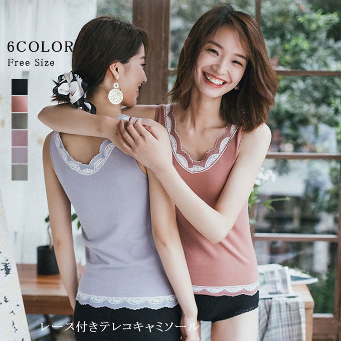 キャミソール レース付き レディース レースタンクトップ インナー カットソー ブラ紐 隠し ブラ紐隠し 前後Vネック ノースリーブ トップス 大人 無地 シンプル 重ね着 レイヤード