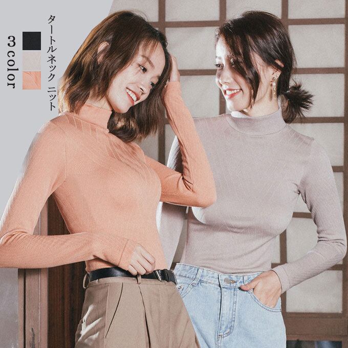 リブニット タートルネック ニット レディース ハーフハイネック 暖かい リブトップス シルク 細リブ編み 柔らかい 長袖ニット インナー 秋/冬