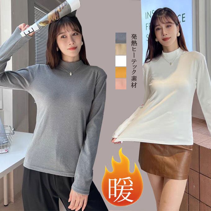 ハーフハイネック インナー レディース タートルネックカットソー 着やせ 長袖Tシャツ カットソー 発熱ヒーテック素材 トップス ハイネックサムホールインナー 春/秋/冬