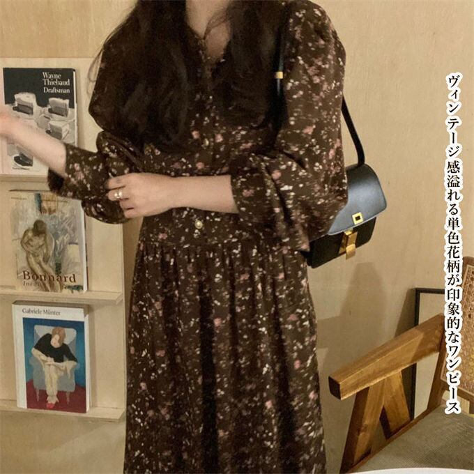 ワンピース 花柄 ロング シャツワンピース 長袖 ワンピース長袖 きれいめ 秋 秋服 ワンピ レトロ レイヤー 可愛い デイリー 大人 レディース 冬