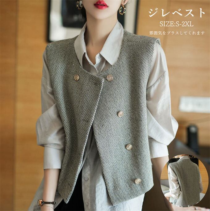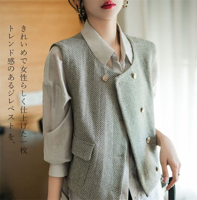 ジレ ベスト レディース 秋 秋服 アウター ジャケット レイヤード ノースリーブ ノーカラー 羽織り オフィス 通勤 OL おしゃれ 秋 冬 ゆったり 30代 40代 50代 送料無料
