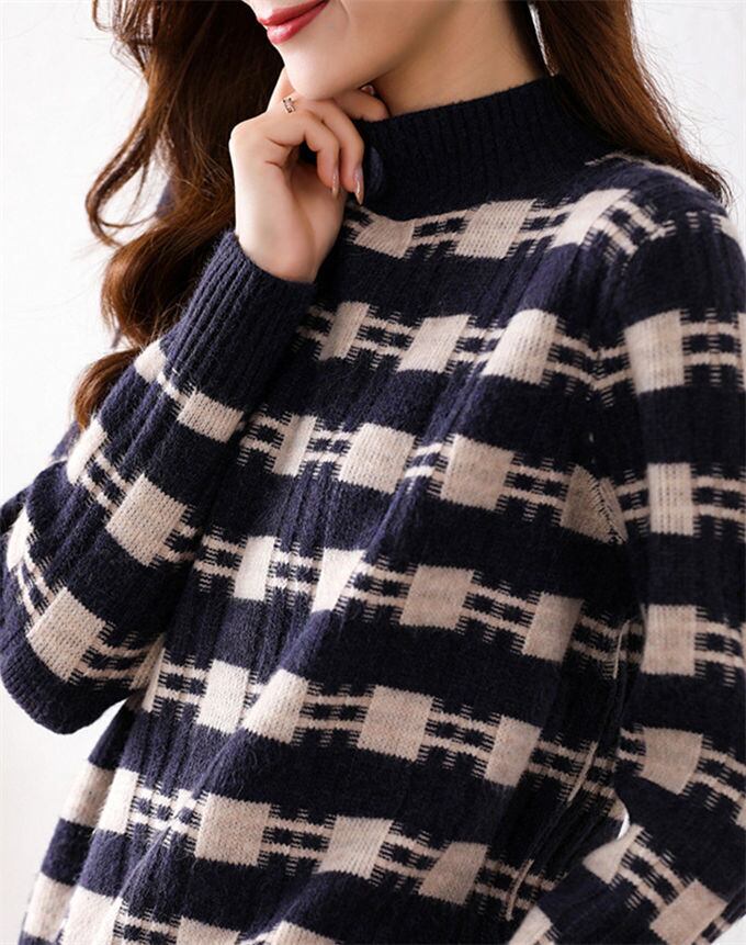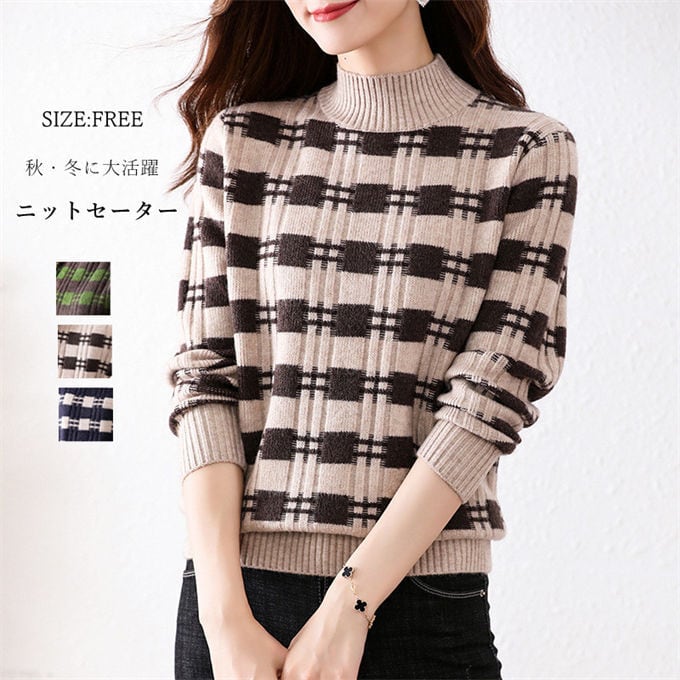 ニットトップス ニットセーター レディース タートルネック 長袖 トップス チェック柄 インナーセーター ニットソー プルオーバー オーバーサイズ リブ カジュアル 韓国ファッション 秋冬 送料無料