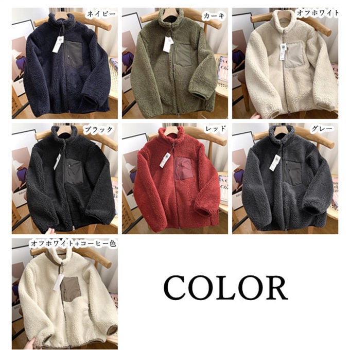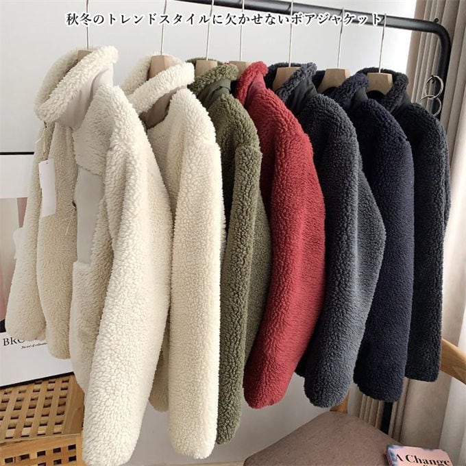 ボアコート レディース メンズ ショートコート ボアジャケット 立ち襟 アウター ゆったり 体型カバー 着回し カジュアル 通勤 オフィス お洒落 防風 暖かい 防寒 あったか 韓国ファッション 秋冬 送料無料