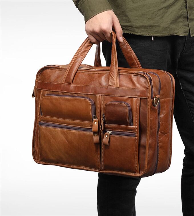 ●このバッグは場所によって、ショルダーバッグ、手提げバッグ、ボストン用でもOK、3WAYのバッグです。サイズが大きめであり、15.6インチPC/12.9インチiPad収納でき、A4、大量荷物入れでも大丈夫です。高品質な本牛革なので、何十年でも丈夫!弊社のこだわりの人気商品であるが、サイズが大きめでもあり、しなやかな本革、広いマチにあわせ、結構物詰められるように、長い期間の旅行にも適用!