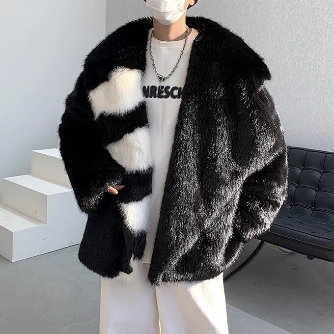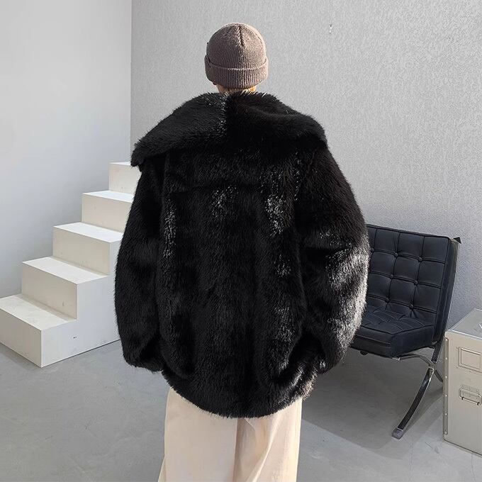 毛皮コート ファーコート メンズ 厚手 アウター フォックス フェイクファージャケット ボアジャケット ショットコート 韓国 ファッション モコモコ ゆったり 冬 冬物 ふわふわ 贅沢 送料無料