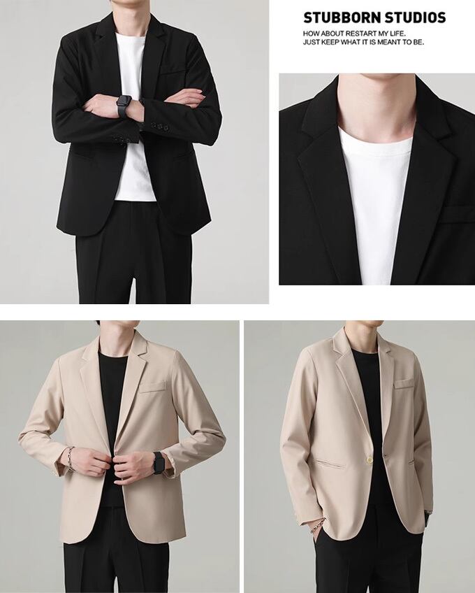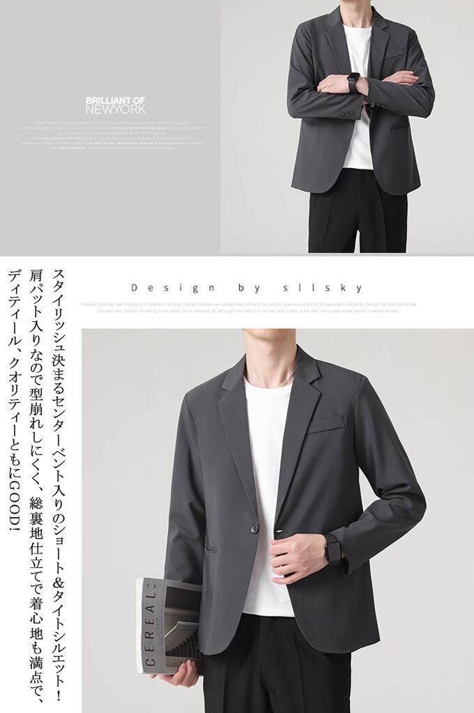 メンズテーラードジャケット テーラードジャケット メンズ ジャケット メンズファッション ノッチドラペル スーツ生地 肩パット入り 1B 無地 ショート タイトシルエット ベーシック トラッド シンプル カジュアル きれいめ ノームコア 韓国ファッション