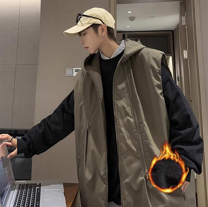 ダウンベスト メンズ レディース ショート 中綿 フェイクダウン ボリュームネック フード付き ワーク フーディ ミリタリー 軍 オーバーサイズ ゆったり 大きいサイズ アメカジ ストリート カジュアル スケーター 韓国ファッション ブラック カーキ