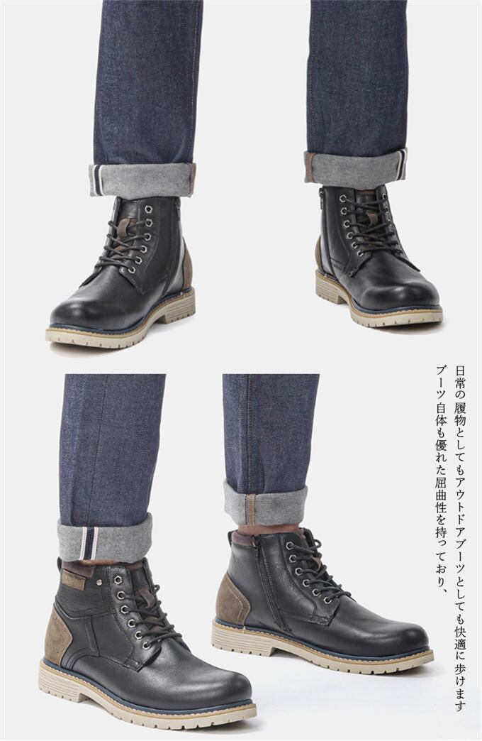 メンズ ブーツ メンズブーツ ワークブーツ マウンテンブーツ ショートブーツ 防寒 保温 防水 裏起毛 サイドジップ カジュアル 通勤 ビジネス 大人 男性用 おしゃれ シューズ 秋冬靴 靴 冬メンズシューズ 送料無料