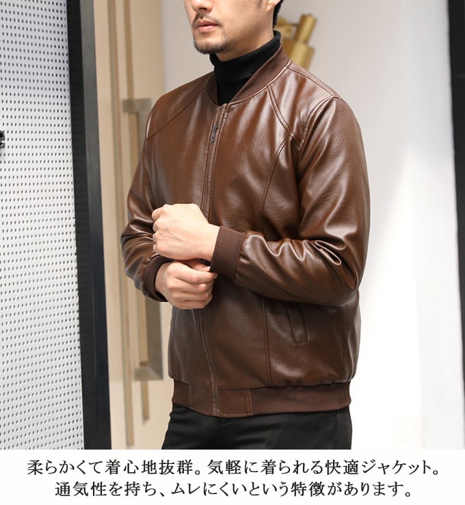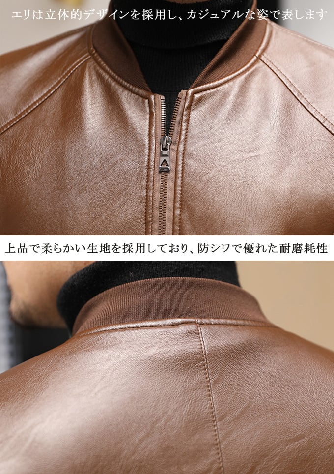 ライダースジャケット メンズ レザージャケット ライダース シングルライダース 裏起毛 防寒 PUレザー レザーコート 革ジャケット 皮ジャケット 立ち襟 スタントカラ ジャケット 無地 秋 秋服 冬 ブラック ブラウン 合成皮革 アウター