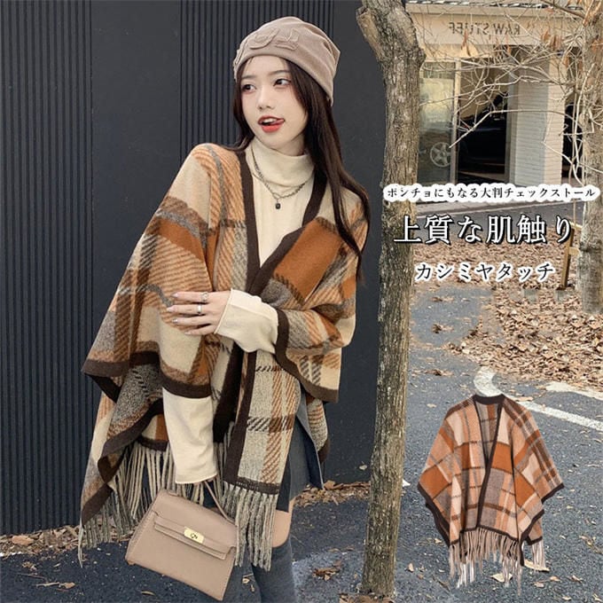 「カシミヤタッチ ポンチョ 大判ストール」